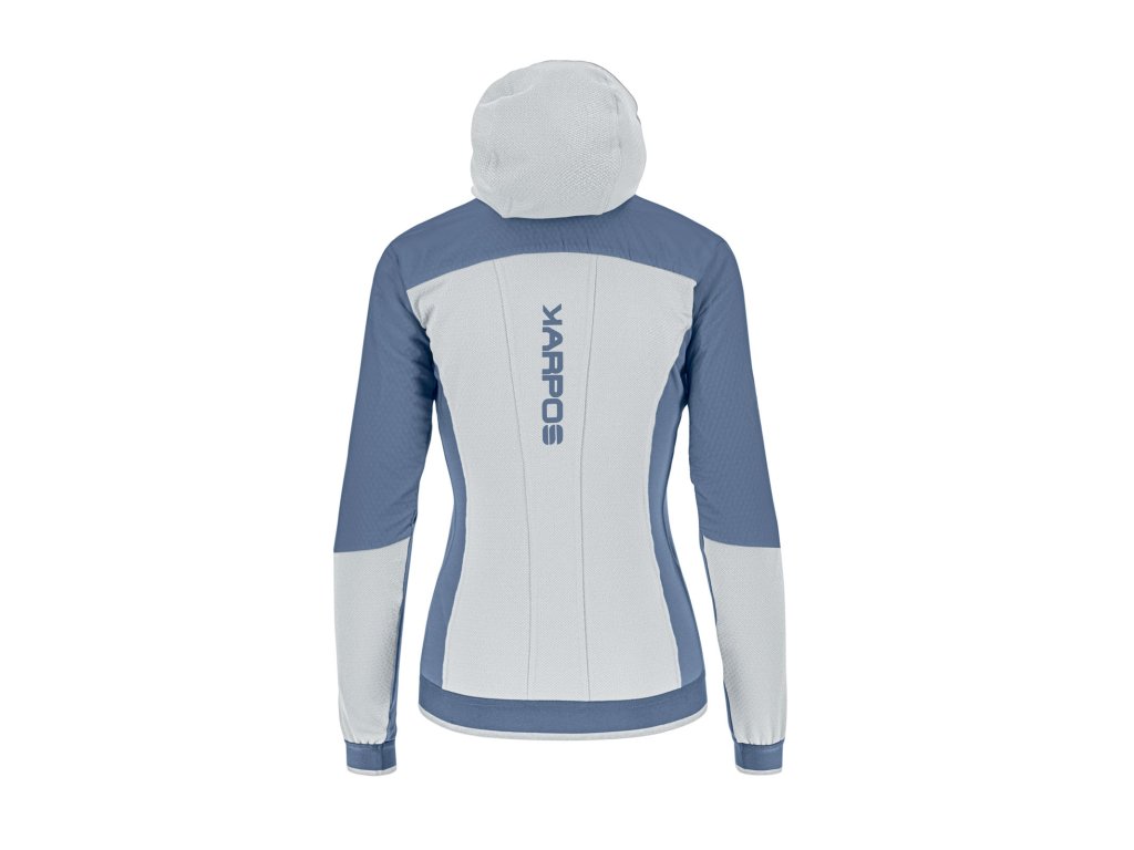 Dámska skialpová bunda Alagna Plus Evo je výsledkom dlhoročnej spolupráce Karpos-u a profesionálnych skialpinistiek. Vďaka špeciálnej konštrukcii je vhodná nielen na skialpové výstupy alebo lyžovanie, ale aj ako zahrievacia bunda počas skialpových pretekov. Použité materiály a Polartec® Alpha® izolácia sú zárukou, výbornej hrejivosti, priedušnosti, ochrany v nepriaznivom počasí a spolu s úzkym strihom aj perfektného sedenia na tele. Nechýbajú vrecká na skialpové pásy, tvarovaná kapucňa a kvalitné YKK® zipsy.