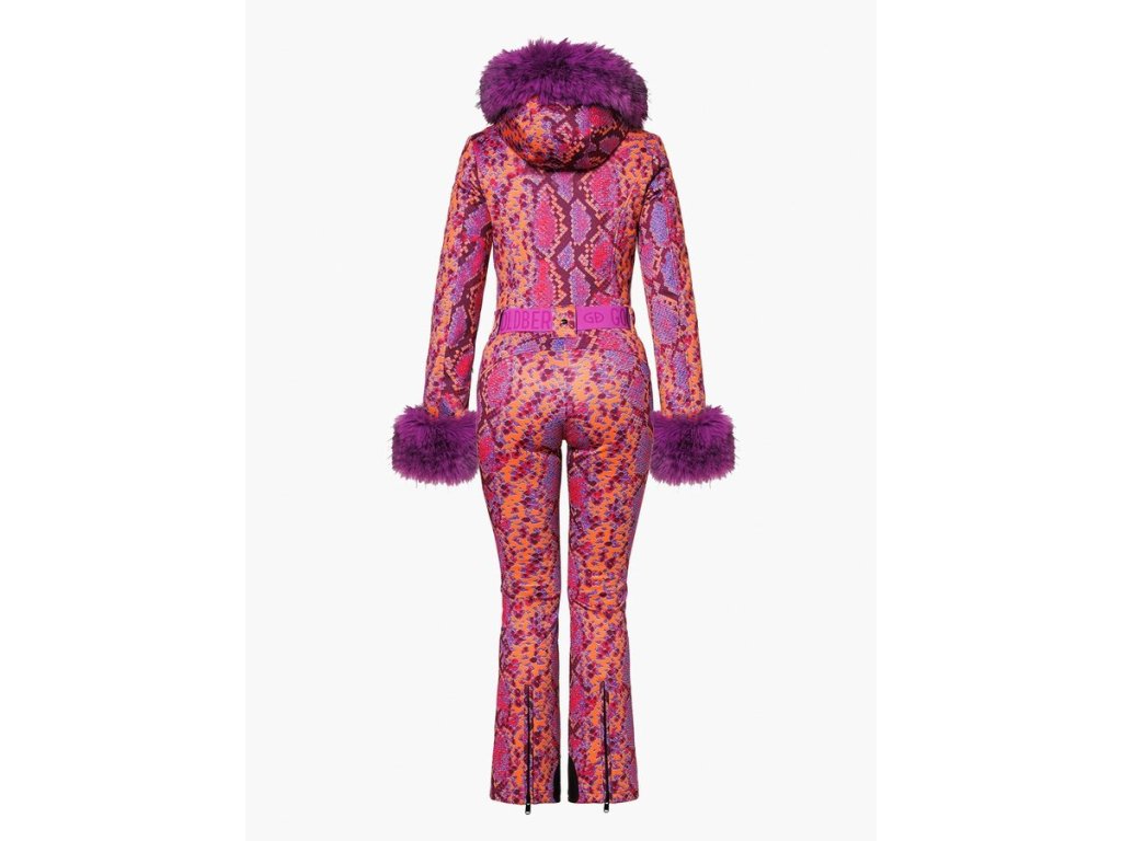 - Slim fit overal s hadím vzorom a faux fur lemom – športový aj módny dizajn