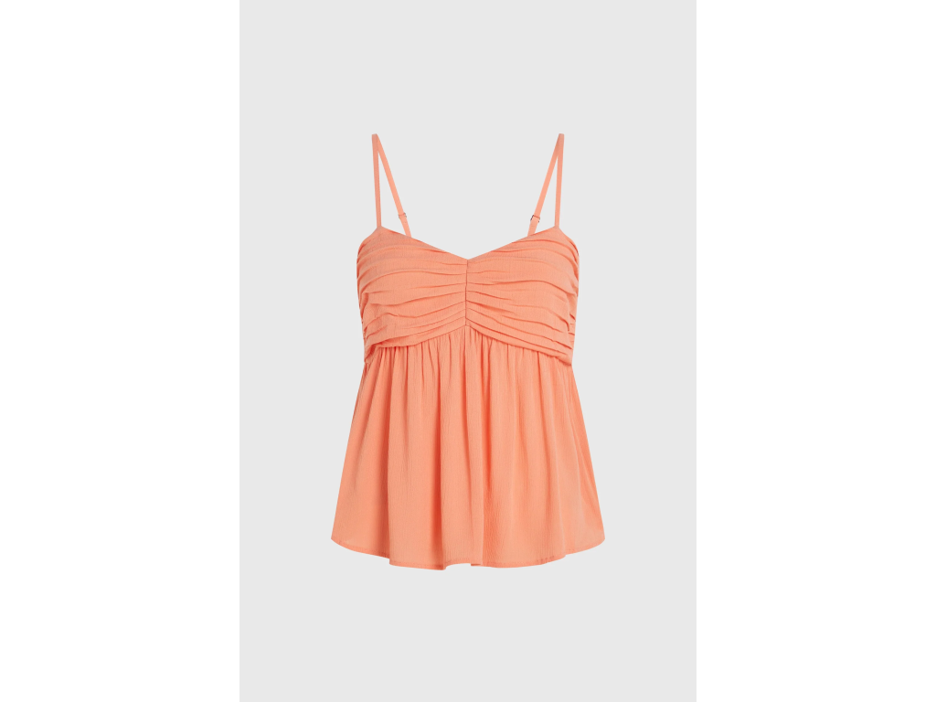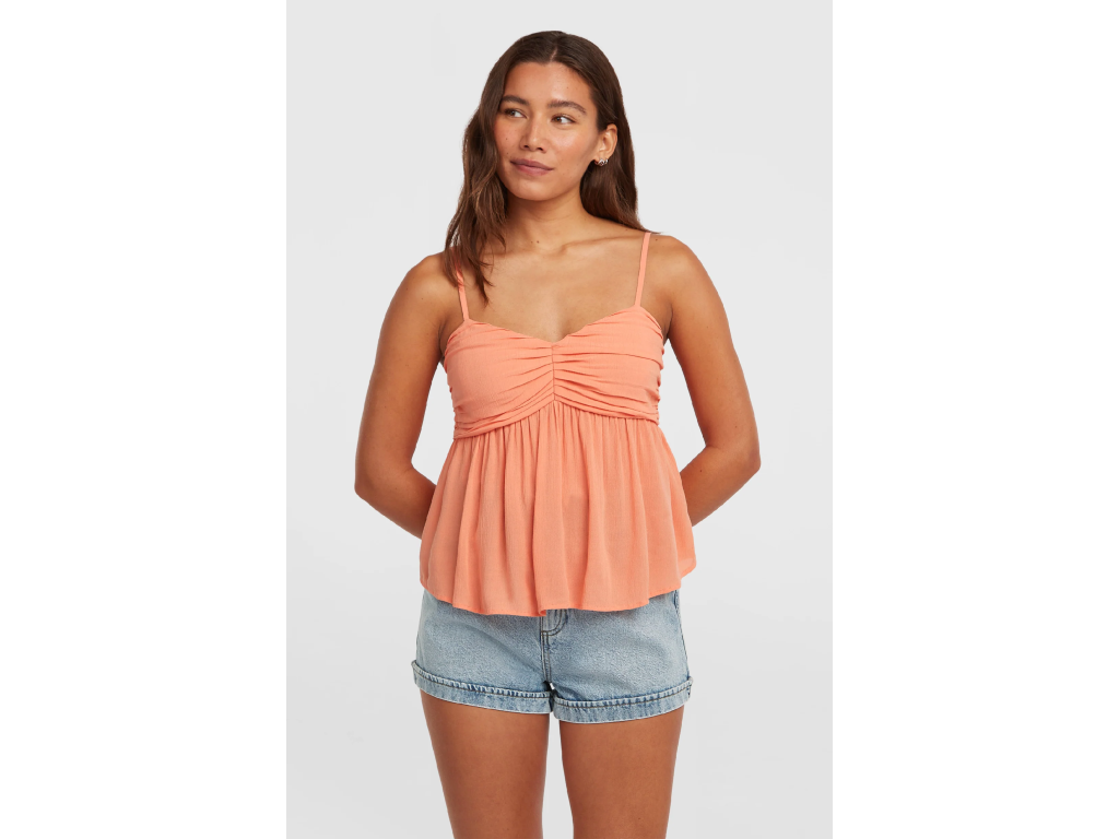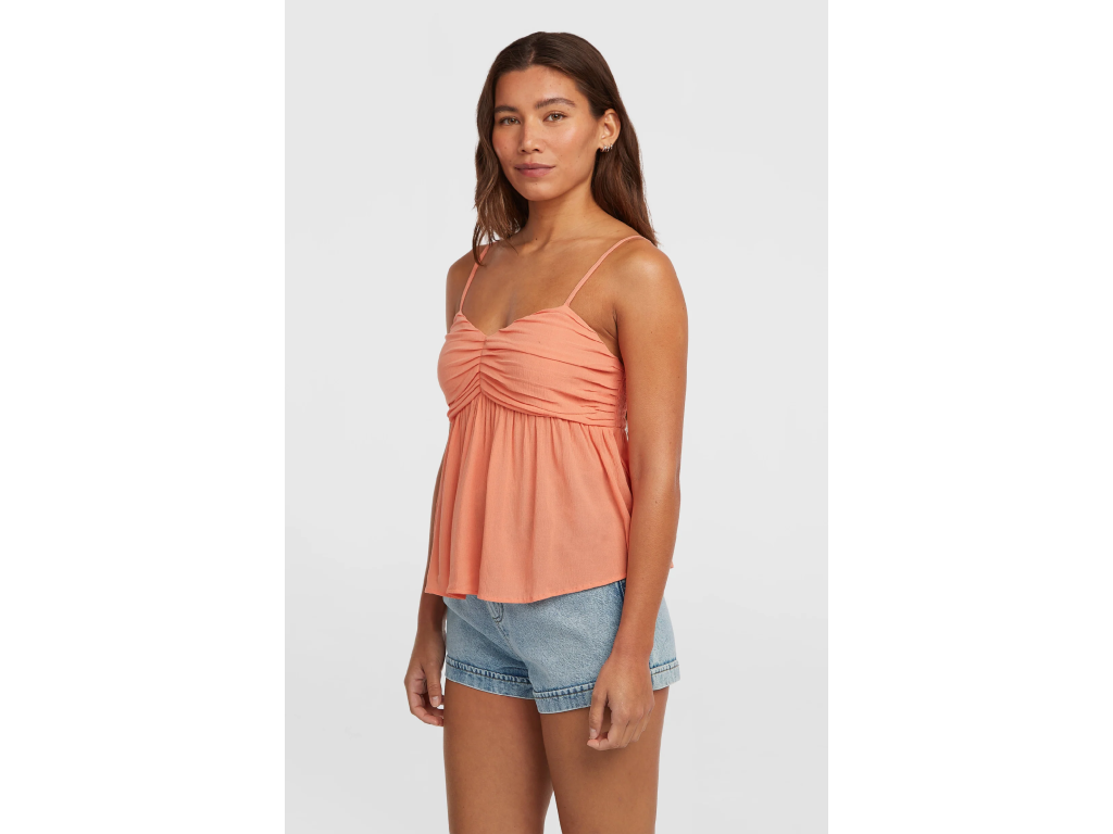 Dámsky tkaný top Reeta je ležérny a ľahko nositeľný top určený na nenútené letné dni. Vďaka voľnému strihu, výstrihu v tvare srdca a nastaviteľným ramienkam zaisťuje pohodlnú a lichotivú siluetu. Krátky strih je ideálny na kombinovanie s nohavicami s vysokým pásom alebo na vrstvenie cez plavky, vďaka čomu sa tento top stane základným prvkom letného šatníka. Vyrobený zo 100 % viskózy Livaeco.